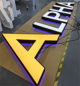 If you’re looking for large channel letters (acrylic LED signage), these are the big 3D illuminated letters used on shop fronts, malls, showrooms,